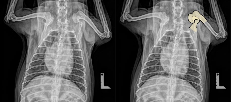 他院にて肩関節脱臼と診断され、非観血的整復を何度か行うも再脱臼を繰り返していました。セカンドオピニオンで来院し、当院にて外科的手術を実施しました。術後は歩行もスムーズで再脱臼もありません。