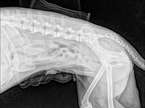 ケージでお留守番していたところ、飼い主様が帰宅し、左後肢を上げているのを発見しました。検査の結果、尾腹側に左股関節が脱臼していました。現在は、再脱臼することもなく快適に歩行できています。